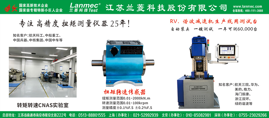 Jiangsu Lanmec Technology Co., Ltd.江蘇蘭菱科技股份有限公司成立于2002年,國家級高新技術(shù)企業(yè)、江蘇省扭矩傳感器研發(fā)中心、江蘇省企業(yè)研究生工作站。 公司主要產(chǎn)品: 轉(zhuǎn)矩轉(zhuǎn)速傳感器(扭矩傳感器):范圍0.01-2000KN.m,可以定制防爆、非標等;各類動力測試設(shè)備:電機測試臺、減速機測試臺、電動機測試臺、執(zhí)行器測試臺、蝸輪箱測試臺、閥門扭矩測試臺、鉆機測試臺、液壓馬達測試臺等;各類模擬負載磁粉制動器、磁滯制動器、電渦流制動器、電力測功機等;測試儀表及軟件的研發(fā)與生產(chǎn)。 蘭菱科技通過了ISO9001、ISO14000、ISO45001體系認證,歐盟CE認證,擁有自營進出口權(quán),強大的研發(fā)能力、全產(chǎn)業(yè)鏈的制造能力、及時售后的保障能力。